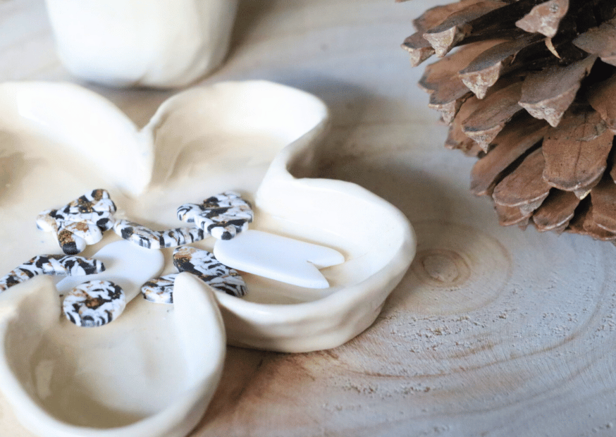 Pour nettoyer les pièces de vos bijoux en argile, vous pouvez tout simplement utiliser un chiffon doux et humide, et/ou une petite brosse à dents avec du savon en cas de tâche plus tenace. On vous conseille d’être le plus délicat qu’il soit avec l’usage de la brosse à dents notamment pour les pièces texturées, cela risquerait de retirer l’effet sur la pièce.