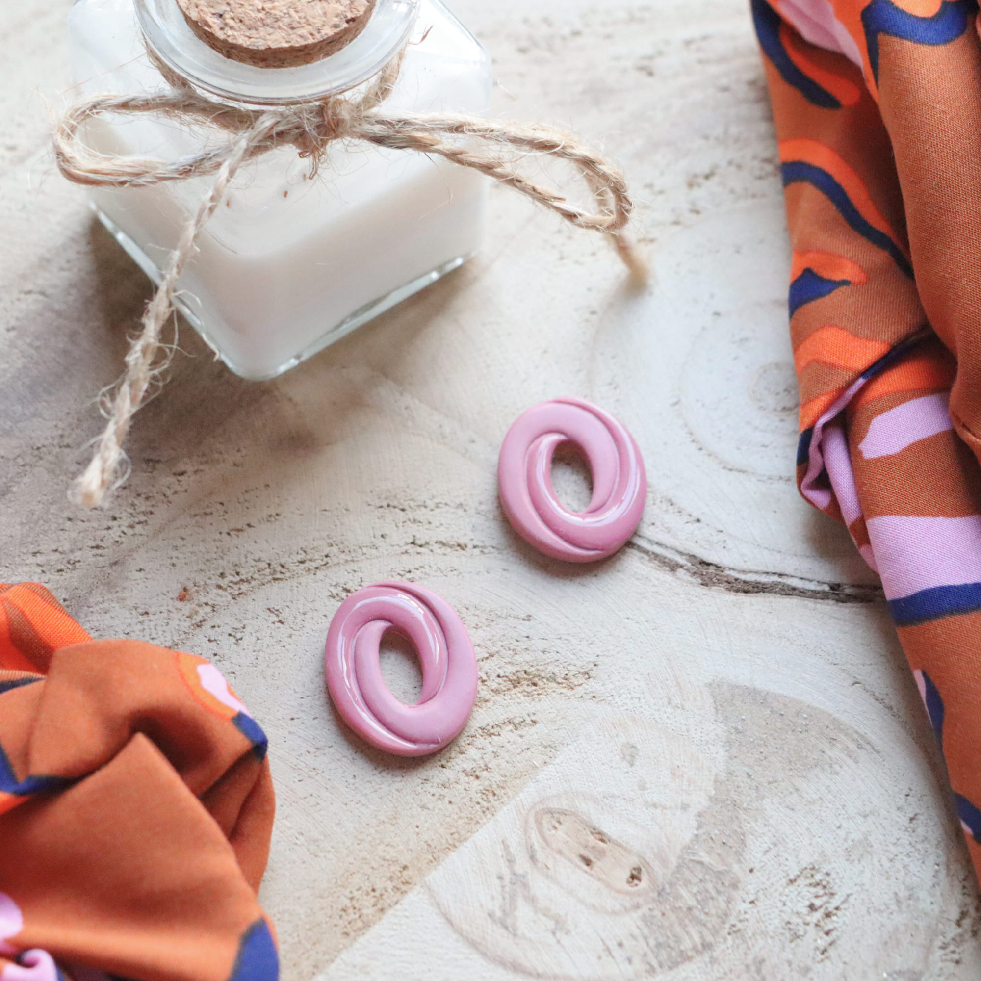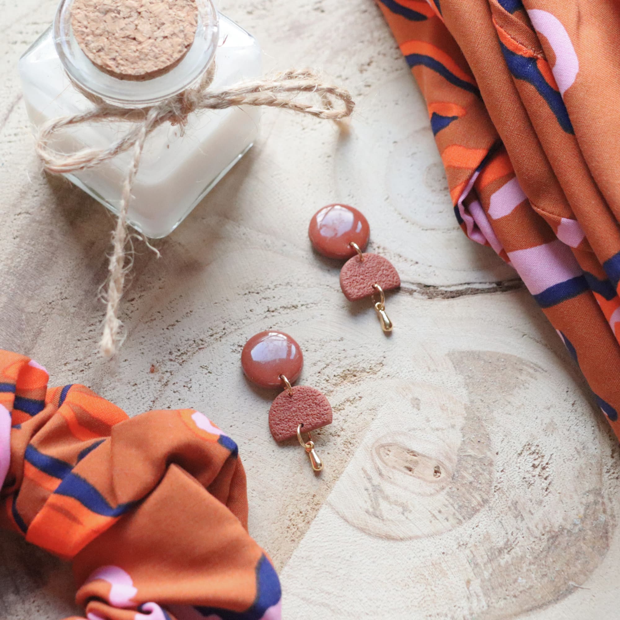 Boucles d’oreilles Galet – Rose & Orange – Bijou unique & fait-main